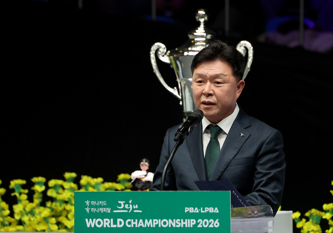 [욜드(YOLD)=유성욱 기자] 프로당구 한 시즌의 최강자를 가리는 월드챔피언십의 막이 올랐다. 프로당구협회(PBA·총재 김영수)는 6일 오후 제주특별자치도 제주시 한라체육관에서 ‘하나카드 하나캐피탈 제주특별자치도 PBA-LPBA 월드챔피언십 2026’(이하 월드챔피언십) 개막식을 열고 본격적으로 대회에 돌입했다. 이날 개막식에는 PBA 김영수 총재, 장상진 부총재를 비롯해 하나카드 이완근 그룹장, 제주특별자치도 오영훈 도지사, 제주특별자치도의회 이상봉 의장 등이 참석해 자리를 빛냈다.