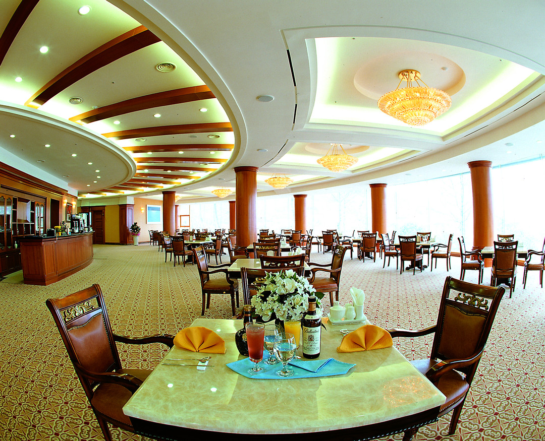 특히 클럽하우스 전면의 가운데 설치된 13m 높이의 전창은 아름다운 자연을 한 폭의 그림으로 고스란히 담아내고 있어 라운딩을 마치고 실내로 들어서더라도 푸른 자연을 느낄 수 있도록 했다. 이 투명한 유리와 높은 층고는 실내.외의 경계를 허무는 요소로 작용한다. 여기에 대리석과 카페트, 화려한 샹들리에, 화이트와 브라운컬러의 조화는 실내를 더욱 깔끔하고 고급스럽게 해준다.