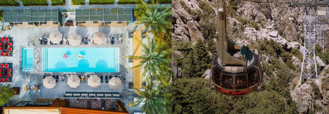 | ▲왼쪽: ARRIVE 호텔 & 오른쪽: 팜스프링스 에어리얼 트램웨이 (©캘리포니아 관광청) |