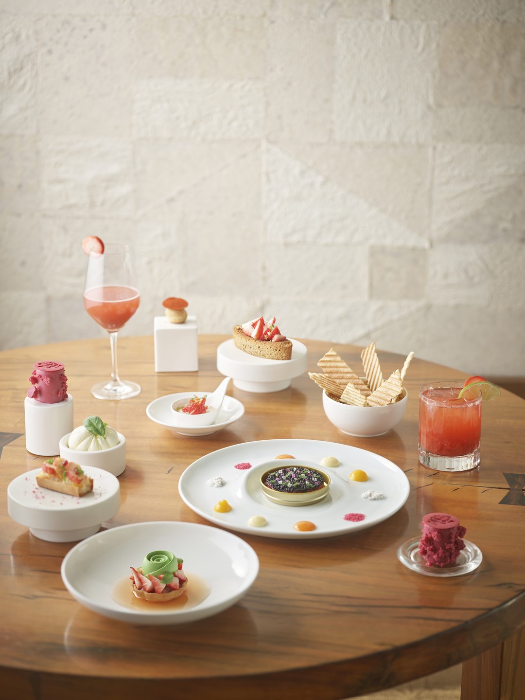 신선한 딸기와 감각적인 세이버리, 달콤한 디저트가 어우러져 우아한 디저트 타임을 완성해줄 스트로베리 애프터눈 티 세트는 한우 타르타르, 랍스터 크로스티니, 게살 슈, 딸기와 부라타 치즈 샐러드 등 세이버리 메뉴로 미식의 즐거움을 선사한다. 디저트에는 바질 소르베와 딸기 스파이스 에센스가 곁들여진 딸기 타르트, 딸기 요거트 케이크, 바닐라 갸또 드 보야주, 딸기 마스카포네 케이크, 장미와 딸기의 향긋한 조화가 돋보이는 장미, 딸기 & 라즈베리 케이크가 포함되어 있다. 또한, 웰컴 드링크로 스트로베리 칵테일 한 잔과 스페셜 블렌딩 티 셀렉션이 제공되며, 가격은 1인 기준 6만 8천원이다.