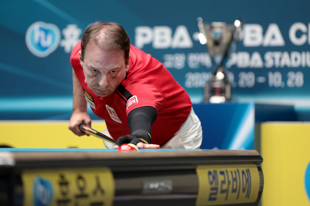 초반 두 세트, 팽팽한 탐색전이 전개됐다. 첫 세트는 초구를 8득점으로 연결하는 등 먼저 크게 앞서간 산체스가 15:13(8이닝)으로 첫 세트를 따냈다. 곧바로 1세트와는 반대 양상으로 김영원이 맞불을 놨다. 김영원은 초구 6득점, 3이닝부터 공타 없이 7점을 추가하는 등 한때 11:2까지 격차를 벌린 후 10이닝에서 15점을 채워 15:8로 세트를 따냈다.