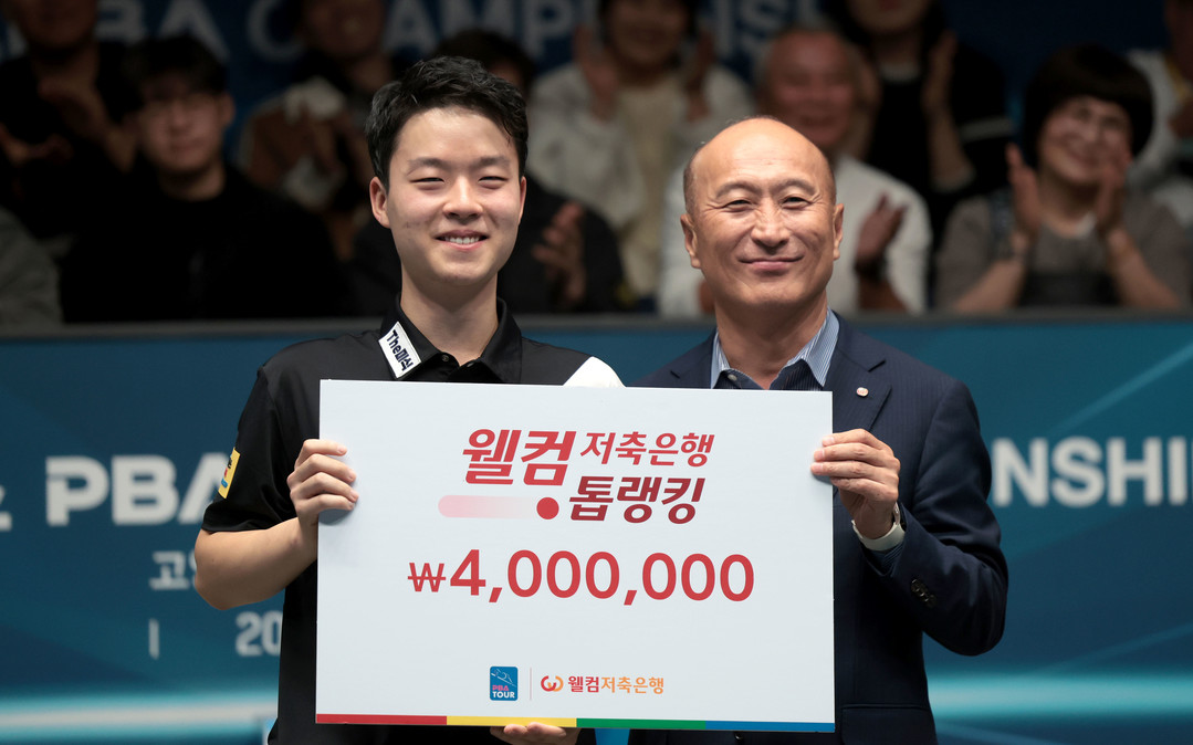 대회 한 경기 최고 애버리지를 기록한 선수에게 주어지는 ‘웰컴톱랭킹’(상금 400만원) 역시 16강서 응오딘나이(베트남·SK렌터카)를 상대로 애버리지 3.462를 기록한 김영원에게 돌아갔다.