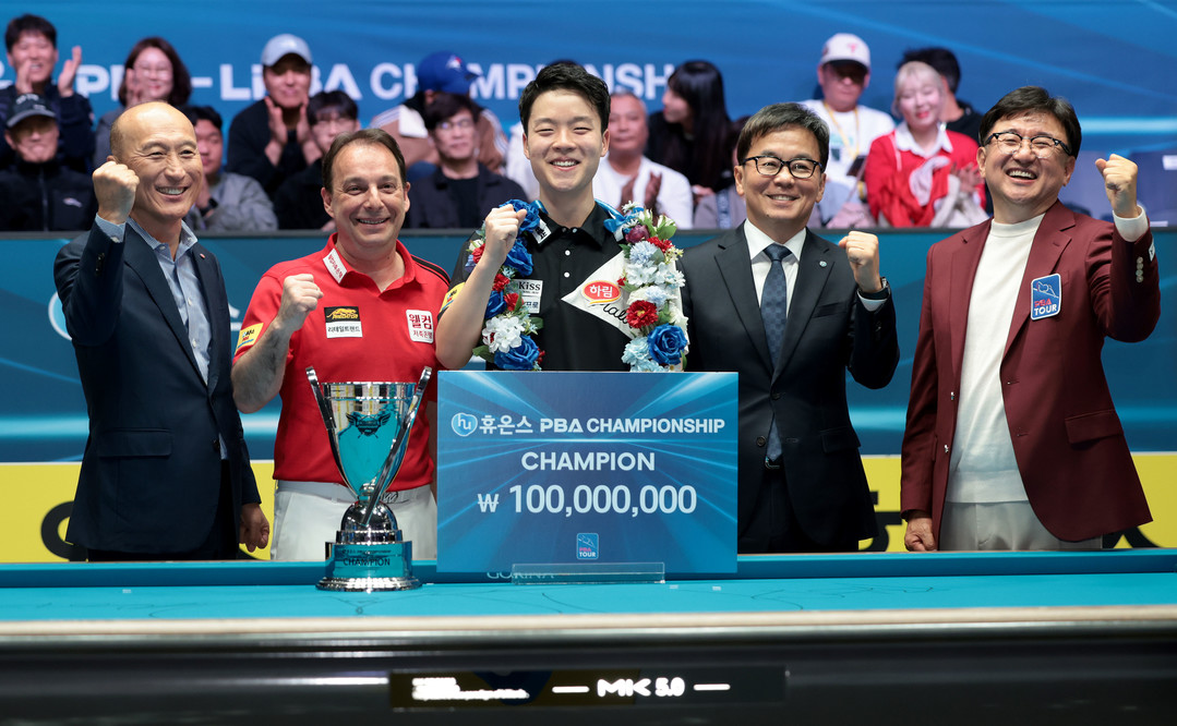[욜드(YOLD)=유성욱 기자] ‘당구천재’ 김영원(18·하림)이 더욱 성장해서 돌아왔다. ‘스페인 3쿠션 전설’ 다니엘 산체스(51·웰컴저축은행)을 꺾고 통산 두 번째 우승컵을 들었다. 28일 경기도 고양시 ‘고양 킨텍스 PBA 스타디움’에서 열린 프로당구 2025-26시즌 6차투어 ‘휴온스 PBA-LPBA 챔피언십’ PBA 결승전에서 김영원은 산체스를 상대로 풀세트 접전 끝에 세트스코어 4:3(13:15, 15:8, 6:15, 7:15, 15:7, 15:5, 11:7)으로 통산 두 번째 정상에 섰다.