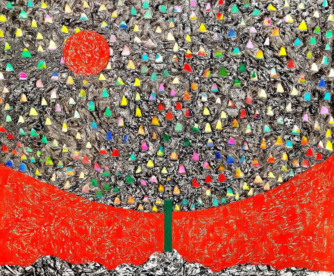 조원영 작가는 둥근 하늘과 네모난 땅 사이에 있는 다양한 사람들을 여러 색상의 세모 기호로 나타냈다. 뚜렷한 색상과 경쾌한 조형 감각이 두드러지며, 상큼하고 활기 넘치는 작품들이다. 상징성을 가진 여러 나무들에서 자연을 사랑하는 작가의 마음이 느껴진다.