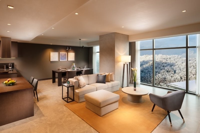 또한 친구, 가족들과 프라이빗한 연말 모임을 계획하고 있다면 레지던스 스위트 객실을 추천한다. 넓은 거실과 다이닝 공간, 프리미엄 주방 시설을 갖춘 구조로 구성되어 있어 가족모임과 연말 모임을 즐기기에 제격이다. 통창 너머로 펼쳐지는 계절의 풍경이 객실 전체를 따스하게 감싸며, 겨울 숲을 내려다보는 파노라마 뷰가 연말의 여유로운 무드를 한층 깊게 만든다. 호텔형 서비스와 레지던스형 편의성을 동시에 갖춘 공간으로, 프라이빗한 휴식과 특별한 연말 모임을 완성할 수 있다. 한편 ‘플랜비 : 패밀리 에디션 2’ 패키지는 연말을 아이와 함께 즐기고자 하는 가족 고객에게 추천한다. 성인 2인과 어린이 1인 기준의 패키지 혜택은 ▲객실 1박(금·토·일 및 공휴일) ▲데메테르 조식 뷔페 ▲허니콤 키즈 라운지 무료 이용 ▲허니콤 세트 키즈 메뉴 ▲비해피(BEE Happy) 인형 ▲실내 수영장 무료 이용으로 구성된다. 또한 어린이 전용 키즈 텐트는 5만5천 원에 추가 설치가 가능해 아이에게 특별한 연말 추억을 선물하기에 제격이다.
