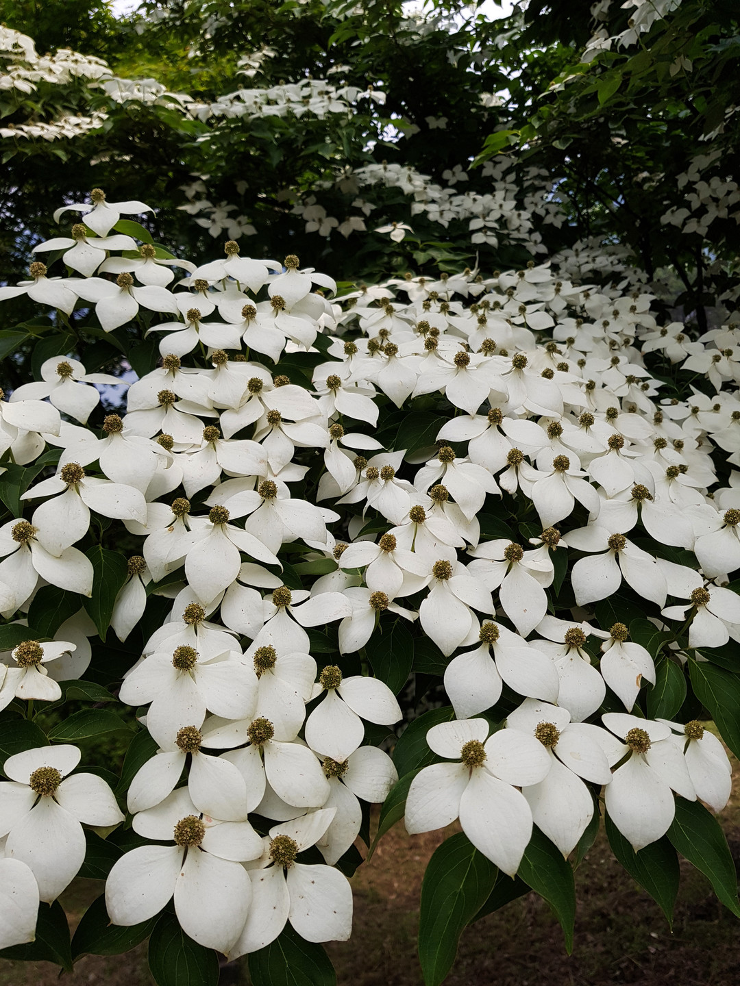 [Smart Senior News=이평재] 우리나라 중부 이남 어디서나 비교적 잘 자라는 낙엽 활엽수이며 6월초, 흰색 순결한 꽃이 매우 아름답다. 예수님의 십자가를 만들었던 나무라도 한다.  넉 장의 꽃잎이 십자가를 닮아서 성스러운 나무로 여기고 있다. 열매는 식용으로 사용한다.