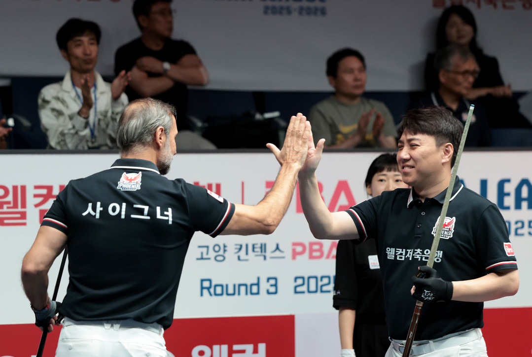 [욜드(YOLD)=조용수 기자] ‘디펜딩 챔피언’ SK렌터카냐, 전통 강호 NH농협카드냐. PBA 팀리그 3라운드 우승이 결정될 수 있는 빅매치가 20일 성사됐다.. 19일 경기도 고양시 ‘고양 킨텍스 PBA 스타디움’에서 열린 ‘웰컴저축은행 PBA 팀리그 2025-2026’ 3라운드 6일차서 SK렌터카는 크라운해태를 세트스코어 4:2로, NH농협카드는 하나카드를 세트스코어 4:2로 제압했다.