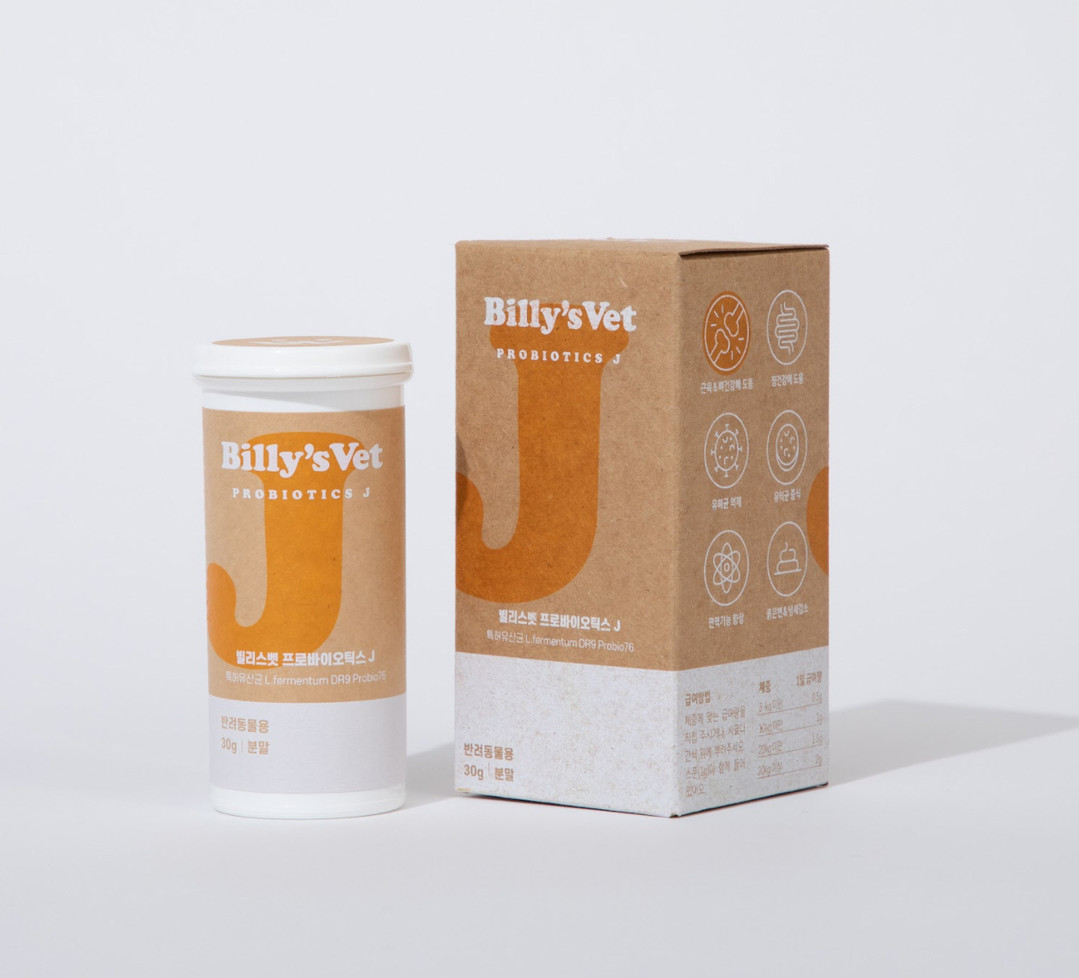빌리스벳 프로바이오틱스 J는 근육과 뼈건강, 장건강을 위한 2중 기능성 유산균으로, 근육퇴화를 예방하고 뼈와 근육 세포 대사 활성화의 특허를 받았다. 뇌건강 특허 균주 ‘L.fermentum DR9’를 국내서 유일하게 사용하며, 유산균 260억CFU/g이 투입돼 장 문제 개선에 도움을 준다.
