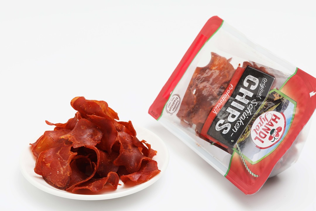 티롤러 쉰켄 칩스, 쉰켄 스펙(뒷다리살)을 얇게 슬라이스 한 뒤 오븐에 건조시켜 크리스피함을 살린 스낵으로 파슬리, 로즈마리, 양파 등을 넣어 더욱 풍부한 감칠맛을 자랑한다. 인공감미료나 색소를 사용하지 않은 토마토 파우더로 인해 입맛을 돋우는 새콤한 풍미의 먹음직스러운 색상이 돋보이는 간편하게 즐길 수 있는 한 입 크기의 색댜른 간식용 안주이다.