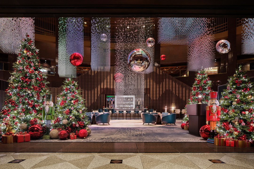 호텔의 시그니처 공간인 ‘로비 라운지 & 바’에서는 세계적인 설치 미술가 박선기 작가의 ‘빛의 기둥’이 압도적인 웅장함을 뽐낸다. 14미터 높이의 천정에서 마치 은하수가 폭포수처럼 쏟아져 내려오는 듯한 장관을 연출하며, 크리스털 개체 6만여 개로 구성된 10개의 초대형 빛 기둥들이 레드, 실버 오너먼트, 그리고 온 공간을 수놓은 트리와 함께 찬란한 조화를 이루며 환상적인 연말 분위기를 연출하는 빛의 향연을 선보인다.