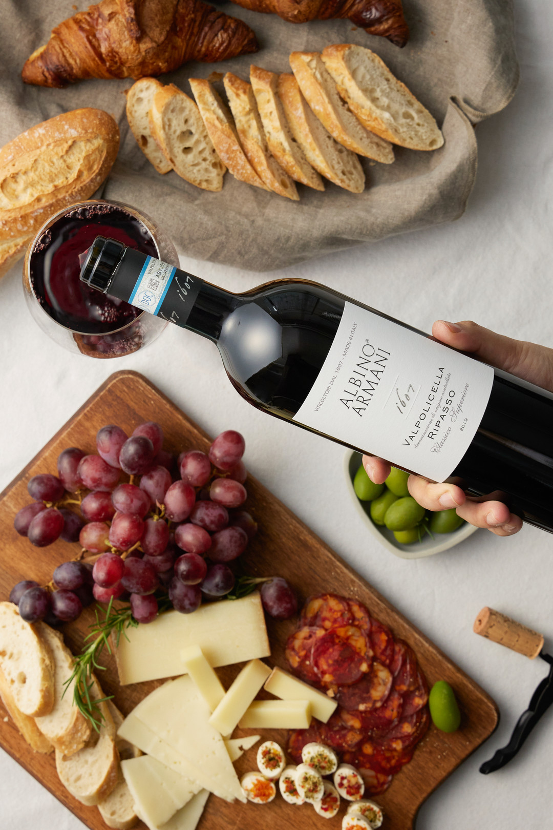 정통 스페인 초리조와 고다가 들어가 치즈로 짭조름한 맛 속에 부드러운 치즈 향이 느껴지는 ‘앙상블 초리조’와 어울리는 와인으로 ‘알비노알마니 발폴리첼 아이글 DOC 클라시코 수페리오레 2020’을 제안한다. 이탈리아 발폴리첼라 클라시코 지역 해발 300~500m 높이 언덕의 테루아를 담은 와인으로 선명하고 활기찬 풍미를 자랑하고 있다.