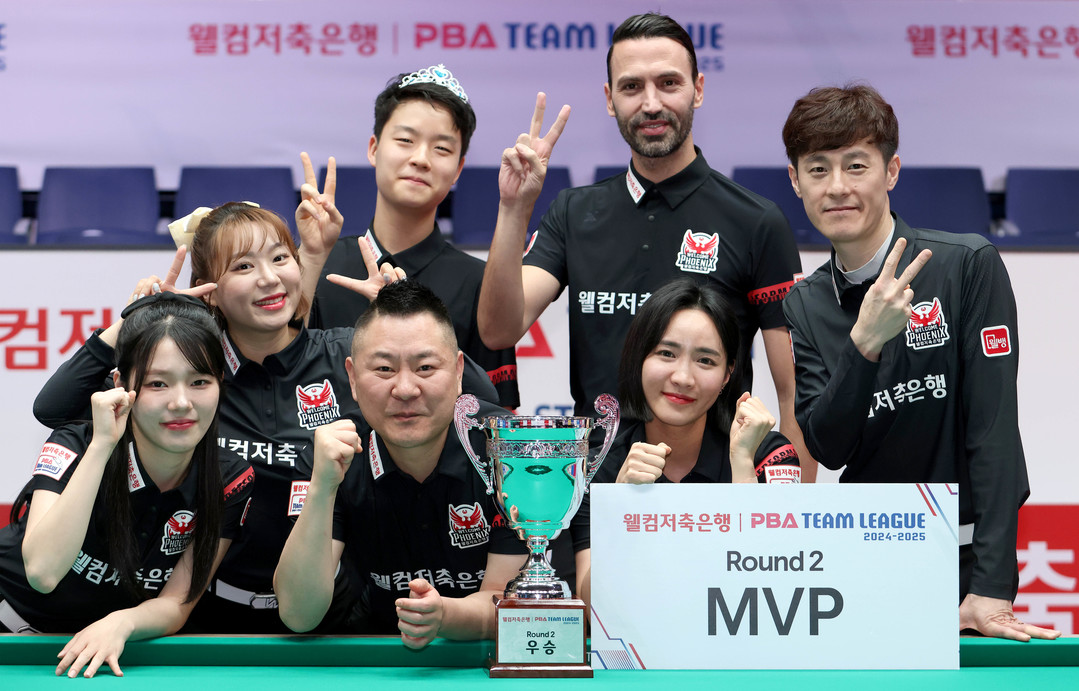 ’그 2라운드 최종일 극적인 우승에 올랐다. 3일 경기도 고양시 ‘고양 킨텍스 PBA 스타디움’에서 열린 ‘웰컴저축은행 PBA 팀리그 2024-25’ 2라운드 최종일서 웰컴저축은행은 우리금융캐피탈과 풀세트 접전 끝에 세트스코어 4:3 승리했다. 최종일까지 우승 레이스를 펼치던 SK렌터카와 크라운해태가 승점 획득에 실패하면서, 웰컴저축은행이 결국 우승컵을 들었다. 이로써 웰컴저축은행은 2022-23시즌 후기리그 우승 이후 두 시즌만에, 라운드별 우승제가 도입된 이후 첫 우승 트로피를 들어올리며 포스트시즌 직행 티켓을 손에 넣었다. |
