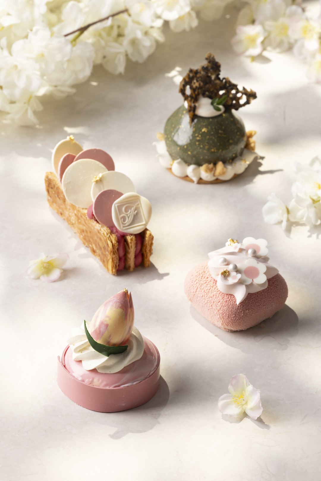 밀푀유의 꽃 케이크는 리치 과육을 더한 밀푀유 퍼프에 딸기와 로즈 가나슈로 만든 조각 케이크이다. 장밋빛 인생 케이크는 산딸기 크레뭬와 리치 화이트 초콜릿 무스를 더한 화이트 다쿠아즈로 만든 조각 케이크이다. 초록마루 케이크는 디플로마트 크림과 쑥 무스 안에 깨튀일과 인절미 크럼블, 거피 팥고물로 만들어 슈가도우와 골드 글레이즈로 마무리 된 조각 케이크다. 마지막으로, 화사한 튤립 초콜렛 장식과 함께 그릭 요거트 무스와 사과 콩피의 부드럽고 산뜻한 맛과 필라델피아 크림치즈의 고소함에 더불어 바닐라와 시나몬 풍미를 만끽할 수 있는 사랑의 고백 케이크는 홀 또는 조각 케이크로 만나볼 수 있다.