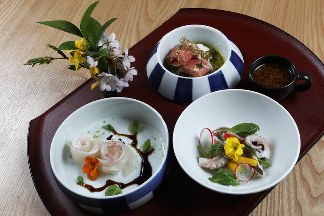 아소산은 봄을 맞이해 아소산의 느낌을 그대로 연출한 특별요리를 선보였다. 일본 도자기로 유명한 후쿠오카현 아리타마을에서 구입한 도자기형 찬합 형태의 일본 전통그릇에 봄의 맛을 전하는 제철 식재료로 임성중 셰프만의 상큼한 요리로 아소산의 봄을 연출한 특별요리이다. 마치 ‘한 지붕 세 가족’ 같이 한 그릇에 품어져 낸 요리들은 마치 자신들은 코스요리양 서로의 식감을 상승시켜 각각의 요리 미각을 더욱 돋보이게 한다.