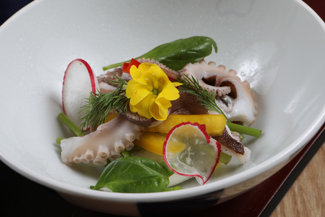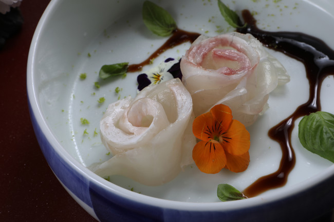 이번 임성중 셰프가 연출한 ‘한 지붕 세 가족’ 요리는 봄철에 한창인 주꾸미를 살짝 데친 숙회 형태로 생생한 식감을 아소산 주방 셰프들이 연구한 겨자씨 드레싱 소스를 곁들여 제철 미나리와 파프리카로 신선함을 더한 ‘주꾸미 숙회 요리’와 혼마구로(참치)를 겉만 살짝 익힌 타다키 요리에 바질 소스를 기본으로 한 ‘혼마구로 타다키’ 요리, 끝으로 장미 모양으로 모양을 낸 광어회에 계란 흰자로 만든 머랭으로 독특한 식감을 표현한 ‘광어 사시미’ 요리로 전통 일식이 아닌 아소산만의 독톡한 표현방법으로 연출했다.
