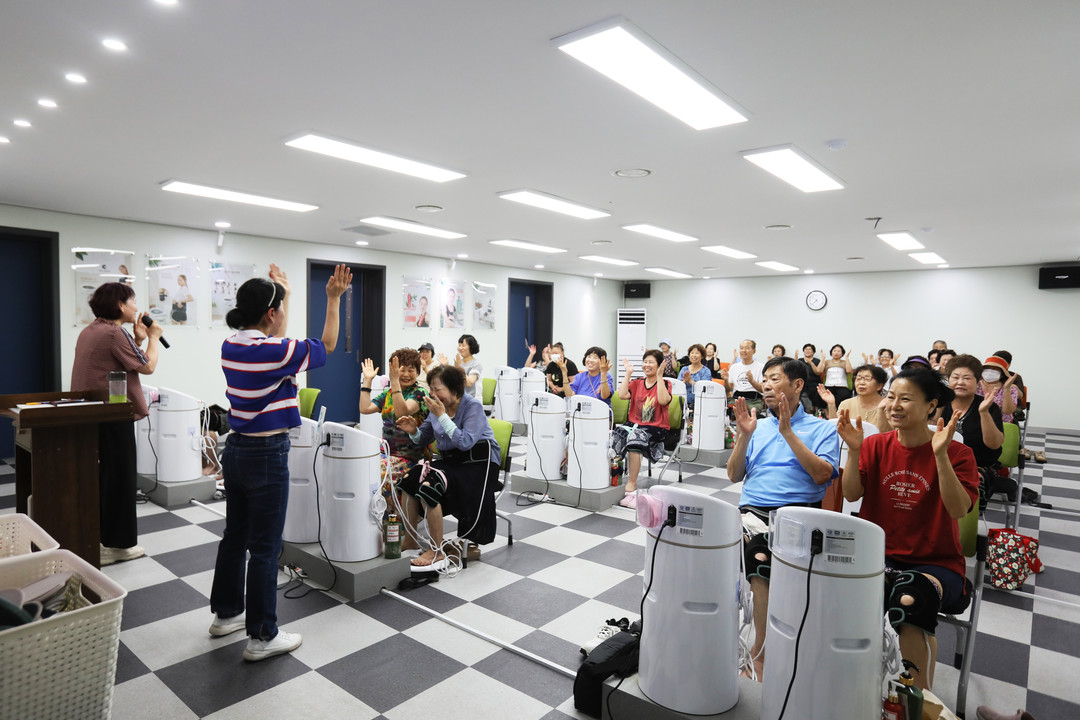 [욜드(YOLD)=유성욱 기자] ‘무료로 갖가지 통증에서 벗어났다!’라는 입소문의 진원지를 수소문해 ‘셀스타 건강체험센터’ 부천점과 일산점을 두곳을 찾았다. 센터는 평일 낮임에도 내방객들로 가득찼다. 45분 간격으로 하루에 11차례 체험프로그램이 진행되고 있는데, 의료기기 인증을 받은 저주파 조합자극기로 통증 부위 3곳 정도를 관리받으며, 노래와 율동, 웃음 치료, 뇌인지 놀이 등 다양한 프로그램이 진행됐다. 한번만 받아도 몸과 정신이 개운할 것 같은데 3회까지 무료 체험이라고 한다. 4번째 방문부터는 소모품인 젤 정도는 개인이 구매해야 한다. 이러한 건강체험센터가 현재 수도권 일대에만 6곳이 운영중인데, 앞으로 더 많은 곳이 오픈될 예정이라고 한다.