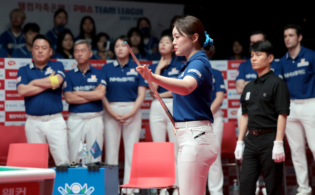 NH농협카드도 2연승을 달리며 2위에 자리했다. 크라운해태를 상대한 NH농협카드는 4세트까지 세트스코어 2:2 박빙의 상황서 5세트 마민껌(베트남)이 접전 끝에 11:10(8이닝)으로 김재근을 이겼고, 6세트(여자복식)에는 김보미가 백민주를 상대로 0:8로 뒤지던 7이닝째 뱅크샷 3회를 포함해 9점을 쓸어담으며 퍼펙트큐를 달성, 9:8로 역전승을 거뒀다. NH농협카드는 김보미의 극적인 역전승으로 세트스코어 4:2로 승리했다.
