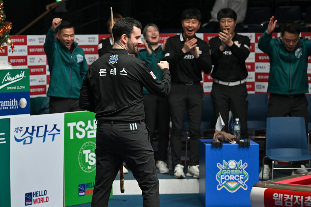이날 NH농협카드는 첫 세트서 조재호가 9득점을 올리는 등 하비에르 팔라존(스페인)-최성원을 3이닝만에 11:2로 승리를 거두며 기분 좋게 출발했다. 휴온스는 2세트서 김세연-전애린이 김민아-김보미를 9:0(6이닝)으로 제압하면서 균형을 맞췄지만, 3세트서 세미 사이그너(튀르키예)를 상대한 조재호가 한 때 1:7로 뒤지던 상황을 15:9로 역전하며 분위기를 뒤집었다. 이후 오성욱과 김보미가 팔라존-장가연을 9:7(10이닝), 5세트서는 안토니오 몬테스(스페인)가 김봉철을 6이닝만에 하이런 5점을 앞세워 11:6으로 물리치면서 세트스코어 4:1을 완성, 경기를 승리로 마무리했다.