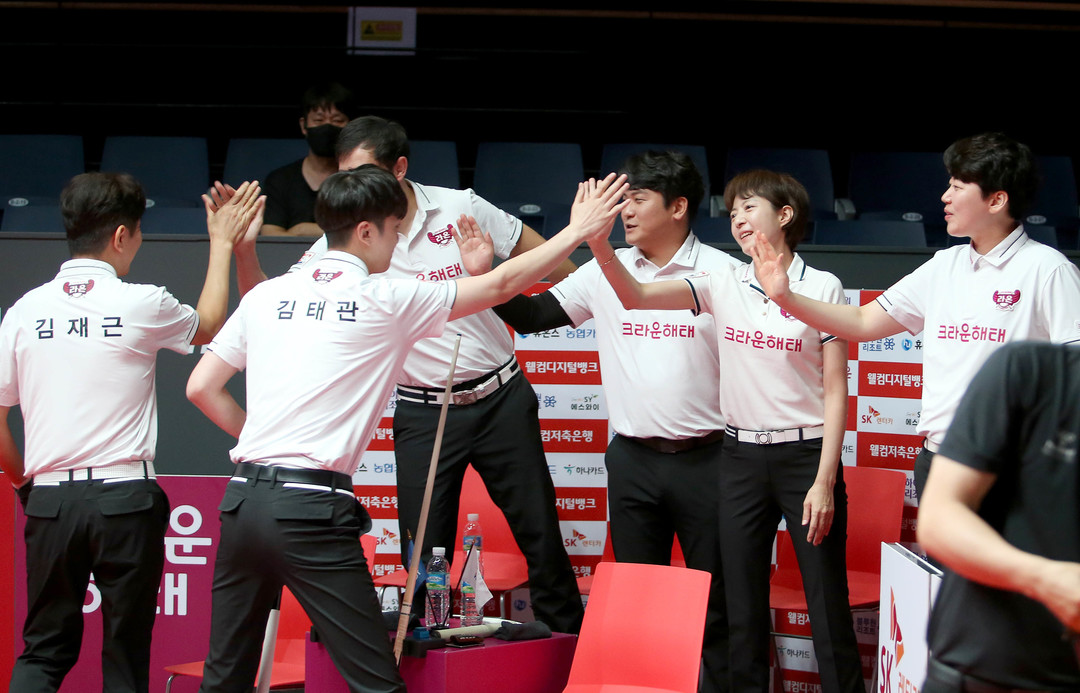 크라운해태는 이날 하이원리조트를 상대로 세트스코어 4:1로 승리를 거두고 승점3을 획득, 하나카드를 제치고 단독 2위로 올라섰다. 첫 세트 김재근과 김태관이 이충복 임성균을 상대로 11:3(9이닝) 승리를 시작으로 백민주, 임정숙, 오태준, 마르티네스 등 팀 전원이 고른 활약을 펼쳐 승리했다.