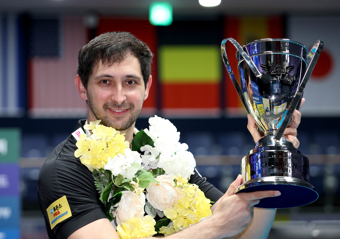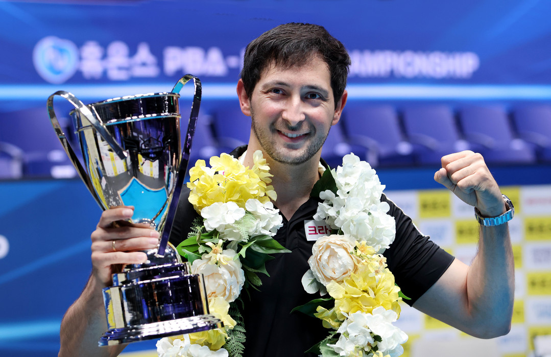 [스마트시니어뉴스=김석구 기자] ‘스페인 최강’ 다비드 마르티네스(크라운해태)가 강동궁(SK렌터카)을 꺾고 통산 6승을 달성했다. 28일 경기도 고양시 ‘고양 킨텍스 PBA 스타디움’에서 열린 ‘휴온스 PBA 챔피언십’ 결승전서 마르티네스는 강동궁을 세트스코어 4:1(15:11, 15:7, 10:15, 15:13, 15:14)로 꺾고 우승을 차지했다.
