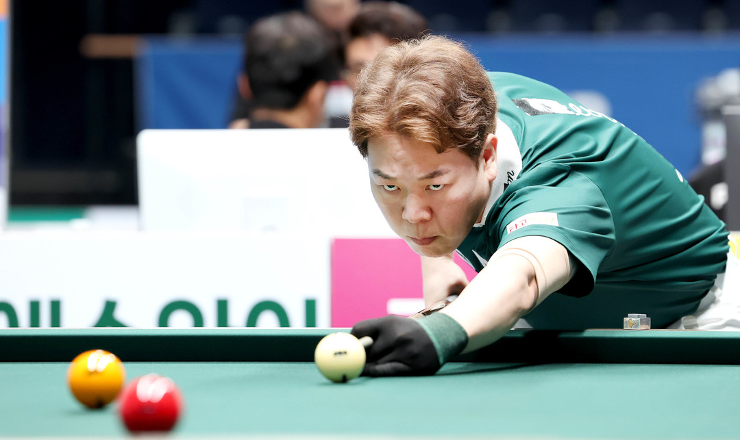 [욜드(YOLD)=조용수 기자] ‘한국 3쿠션 간판’ 조재호(NH농협카드)가 차세대 기수 김준태(하림)를 완파하고 PBA 16강에 진출했다. 4일 경기도 고양시 ‘고양 킨텍스 PBA 스타디움’에서 열린 프로당구 2025-26시즌 8차투어 ‘하림 PBA-LPBA 챔피언십’ PBA 16강서 조재호가 김준태를 상대로 세트스코어 3:0으로 완승했다.