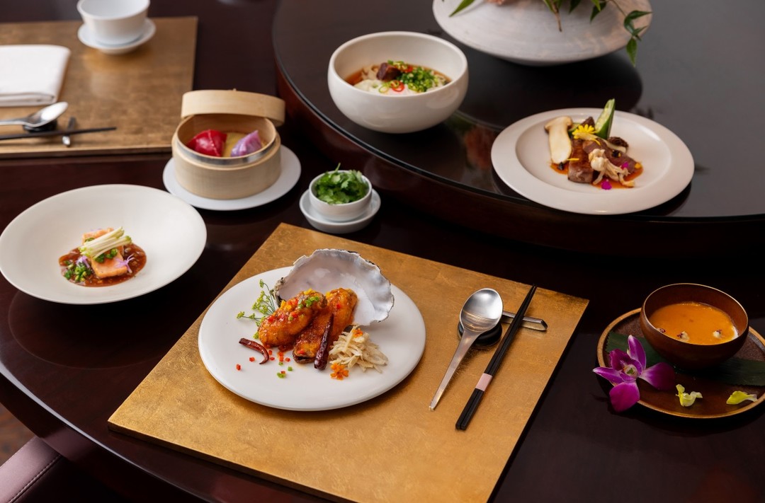 중식당 도원은 온 산의 나뭇잎이 붉게 물들어 있음을 뜻하는 ‘만산홍엽 (滿山紅葉)’ 코스 요리를 선보인다. 삼배체 굴튀김, 발효콩 소스를 얹은 한우 안심, 닭 육수에 오향 갈비를 얹은 도삭면 등 7가지로 구성했다. 모든 메뉴는 가을 단풍을 연상케하는 붉은색으로 연출해 보는 재미를 더했다. 특히 중식 경력 18년 차 ‘우싀롱(卢仕龙)’ 셰프의 딤섬 2종은 대하와 각종 버섯, 물밤을 넣어 육즙과 부드러운 식감이 일품이다.