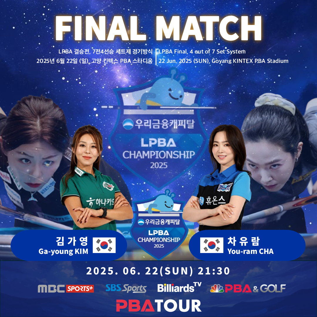 김가영과 차유람의 시즌 개막 투어 결승전은 22일 저녁 9시30분부터 ‘고양 킨텍스 PBA 스타디움’에서 우승상금 4000만원을 두고 7전4선승제로 진행된다.