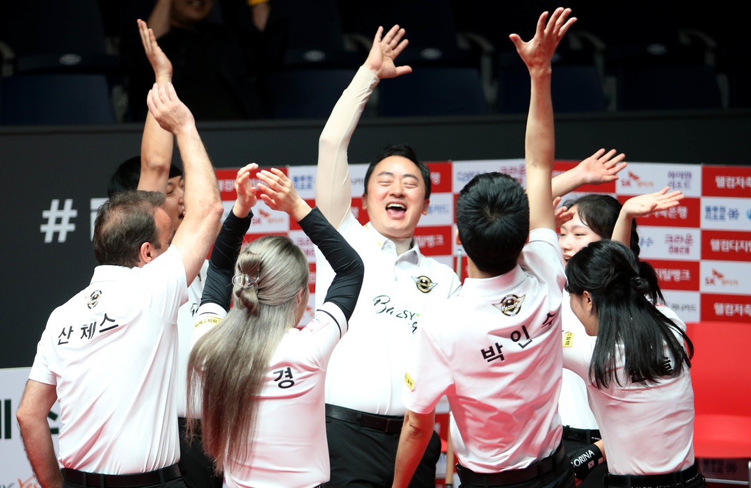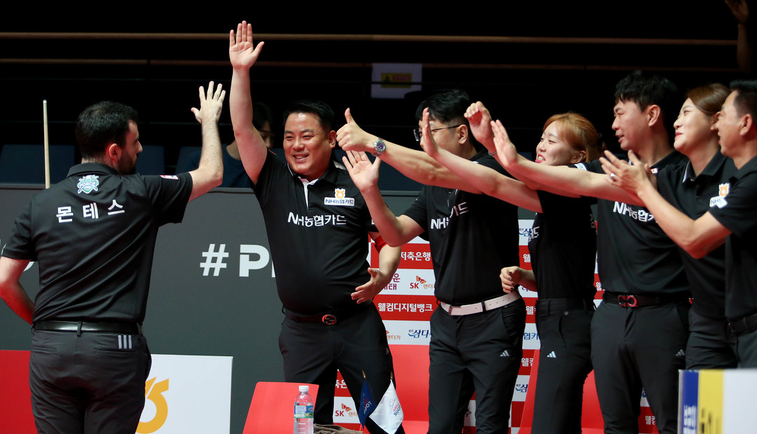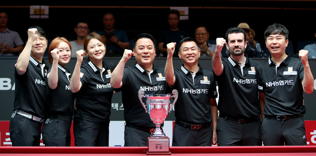 [스마트시니어뉴스=신성식 기자] PBA 팀리그 에스와이와 SK렌터카, NH농협카드가 2라운드 최종일 결과로 우승 경쟁을 펼친다. 23일 경기도 고양시 ‘고양 킨텍스 PBA 스타디움’에서 열린 ‘웰컴저축은행 PBA 팀리그 2023-2024’ 2라운드 8일차 경기서 에스와이와 SK렌터카가 각각 하이원리조트와 블루원리조트를 세트스코어 4:1, 4:2로 꺾고 승점3을 추가, 나란히 공동 1위로 올라섰다. NH농협카드는 하나카드를 세트스코어 4:1, 크라운해태는 휴온스를 세트스코어 4:2로 물리치고 승점3을 확보했다.