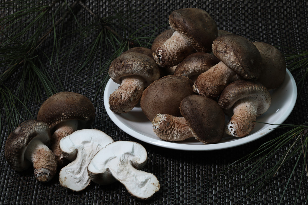 송이버섯산중고송(山中古松) 밑에서 자라 향기로운 솔 냄새가 난다. 열량이 적고 비타민 B2(탄수화물.지방을 에너지로 바꿔준다)가 들어 있어 다이어트하는 사람에게 추천된다. 또 혈중 콜레스테롤 수치를 내리는 성질이 있어 동맥경화.심장병.고지혈증.당뇨병.담석증 환자에게 권할 만하다. 편도염이 있으면 숟가락으로 혀를 누르고, 가루 내 말린 것을 양쪽 편도 부위에 골고루 뿌려준 뒤 30분쯤 뒤 물을 마신다. 이를 3 ~ 4회 반복하면 삼킬 때의 아픔이 사라진다. 비타민 D와 베타 글루칸이 풍부하다는 것도 이 버섯의 장점이다. 베타 글루칸은 변비를 막을 뿐더러 장의 노폐물 배출을 도와 대장암 예방에도 유효하다.