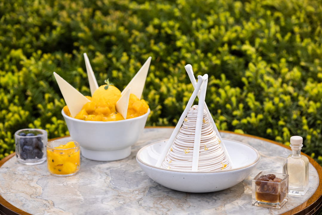 더불어, 스위스 알프스산맥 몽블랑에서 유래된 고급 디저트, 몽블랑 케이크를 시원한 빙수 버전으로 재해석한 몽블랑 빙수는 마치 작은 알프스를 담아낸 듯한 비주얼과 체스트넛 크림, 그리고 럼 시럽이 어우러져 기분 좋은 달콤함을 선사한다. 이 외에, 대표 열대 과일, ‘망고’와 상큼한 맛을 극대화해 줄 패션 프루트, 그리고 화이트 초콜릿이 곁들여져 달콤함까지 맛볼 수 있는 다채로운 매력 가득 담아낸 패션 프루트 망고 빙수를 선보인다.