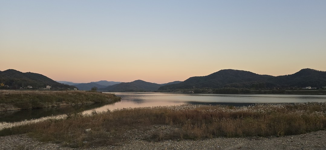 | ▲남한강에 노을이 드리우면 불게 물든 남한강과 어우러진 억새 |