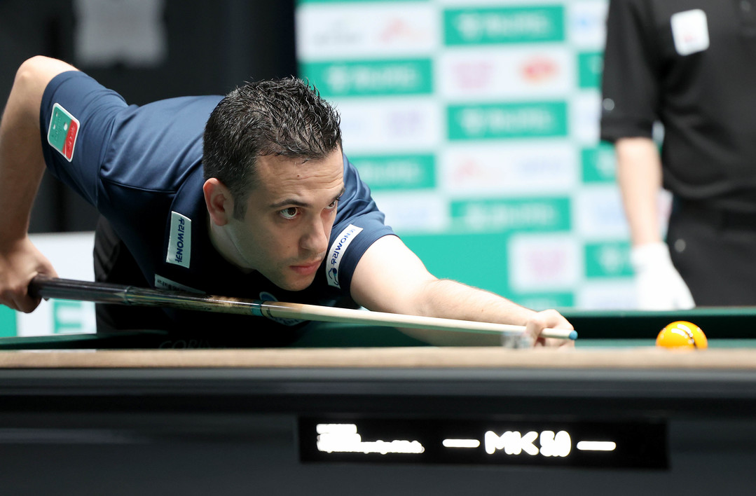 개막투어 준우승자 다니엘 산체스(스페인·웰컴저축은행)는 이영민을 상대로 극적인 역전승을 연출했다. 앞선 두 세트를 내주고 3세트까지 10:13으로 밀리다 13이닝째 1점, 14이닝째 4점을 올려 15:13으로 역전승을 거둬 한 세트를 만회했다. 흐름을 찾은 산체스는 4세트를 15:8(5이닝)로 승리해 세트스코어 동률을 만들었고, 승부치기까지 승리해 간신히 64강 대열에 합류했다.