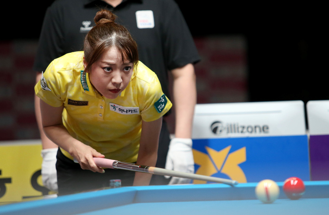 결승서 사카이와 김민아는 경기 초반부터 팽팽하게 맞섰다. 김민아가 먼저 한 세트를 앞서면 사카이가 재빠르게 한 세트를 따라붙으며 승부의 균형을 맞추는 양상이었다. 첫 세트는 김민아가 기선을 잡았다. 초반 4이닝만에 8:1로 크게 앞선 김민아는 이후 5이닝동안 공타에 머물러 사카이에 추격을 허용, 8:8 동률을 이뤘으나 10이닝째 행운의 뱅크샷을 포함해 남은 3점을 채워 11:8로 승리했다.