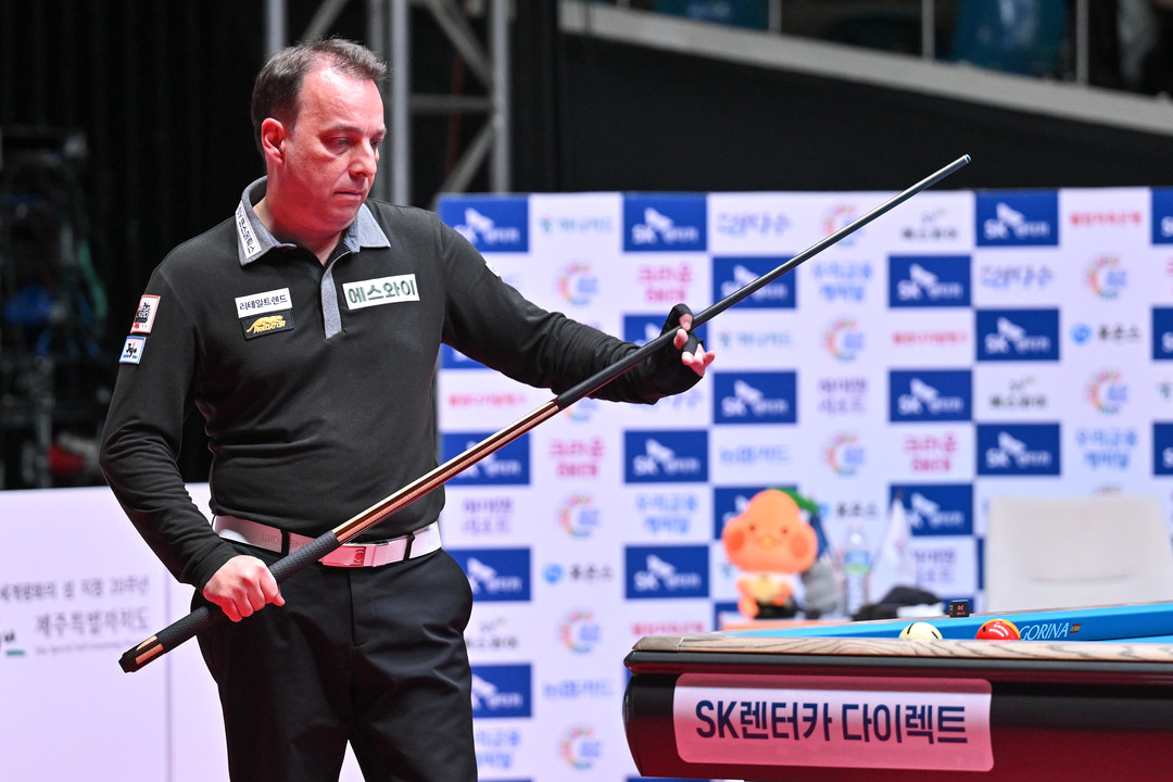 ‘슈퍼맨’ 조재호(NH농협카드)는 ‘베트남 강호’ 응오딘나이(SK렌터카)에 역전을 허용하며 2:3으로 패배해 3연속 월드챔피언십 우승에 적신호가 켜졌다. ‘헐크’ 강동궁(SK렌터카)은 박인수(에스와이)를 장기전 끝에 3:1로 물리쳤고, 에디 레펀스(벨기에·SK렌터카)는 애버리지 2.250을 기록하며 대회 첫 날 가장 높은 애버리지로 승리를 챙겨갔다. 세미 사이그너(튀르키예·웰컴저축은행)는 자국 후배 부라크 하샤시(하이원리조트)를 세트스코어 3:1로 이겼다.