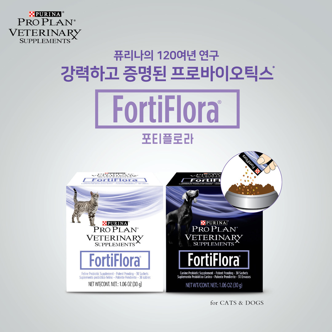 강아지용과 고양이용 2종으로 출시된 포티플로라는 네슬레 퓨리나가 국내에 처음 선보이는 반려동물 전용 프로바이오틱스 보충제다. 포티플로라는 강아지와 고양이의 정상적인 장 건강 및 미생물 균형을 촉진하는 것으로 입증된 유산균 Enterococcus faecium SF68(이하 E.faecium SF68)을 함유하고 있어 급성 장염이나 불량한 대변 상태 등을 개선할 수 있다.