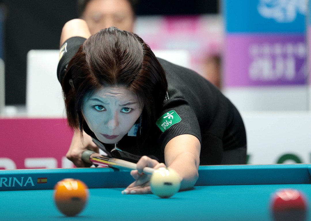 2차투어(하나카드 챔피언십)와 3차투어(NH농협카드 채리티 챔피언십) 우승자 스롱은 ‘원조 퀸’ 임정숙을 상대로 극적인 승리를 따냈다. 세트스코어 1:1 상황에서 3세트 스롱은 하이런 10점을 앞세워 2이닝 만에 11:0 완승을 거뒀지만, 4세트엔 임정숙이 11:0(7이닝)으로 승리하며 5세트로 향했다. 5세트 스롱은 5:8로 1점만 허용하면 절체절명의 상황에서 11이닝째 연속 뱅크샷을 성공하며 9:8로 극적인 역전승을 따내며 4강 티켓을 얻었다.