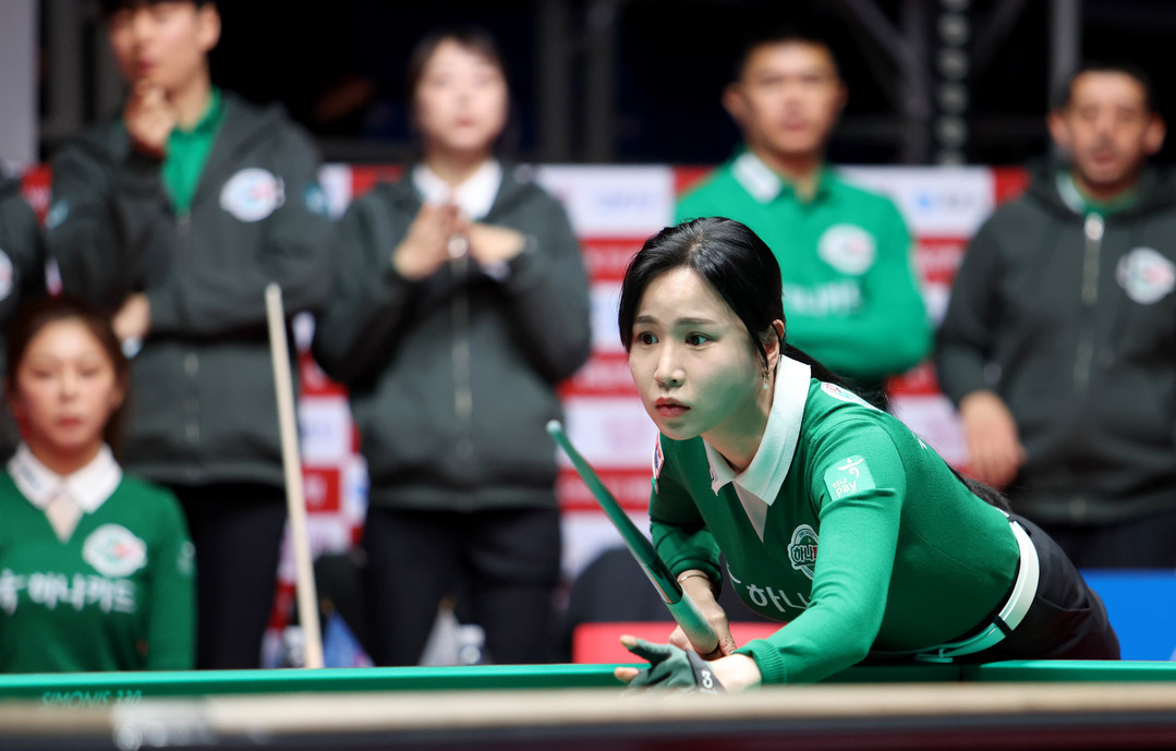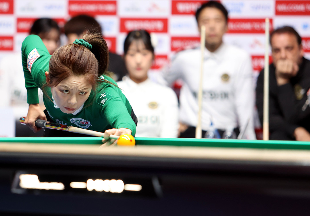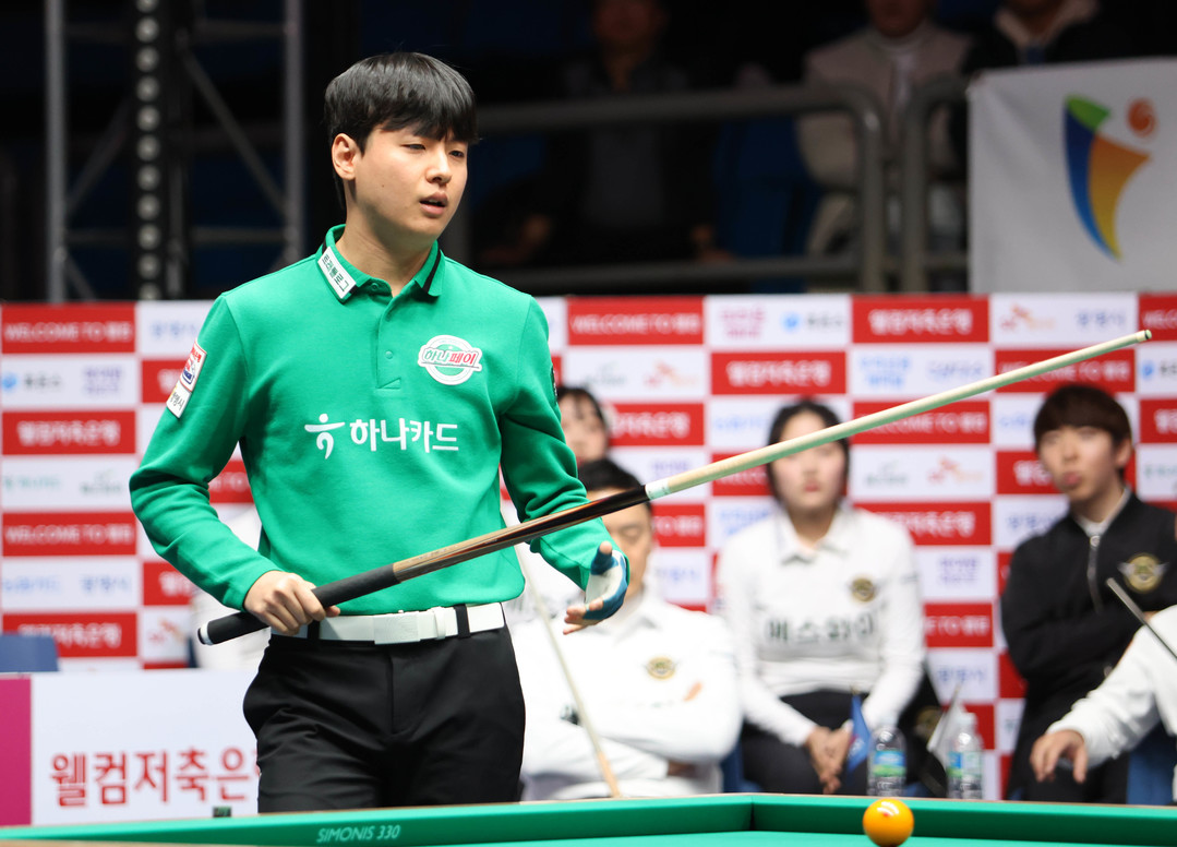 이어진 2경기서 하나카드가 에스와이를 상대로 4:2로 승리를 거뒀다. 1세트(남자단식)서 응우옌꾸옥응우옌(베트남)-신정주가 다니엘 산체스(스페인)-황득희를 11:8(9이닝)로 제압하고, 2세트(여자복식)서 김가영-김진아가 9:5(8이닝)로 한지은-장가연에 승리해 순식간에 2:0으로 앞서갔다.
