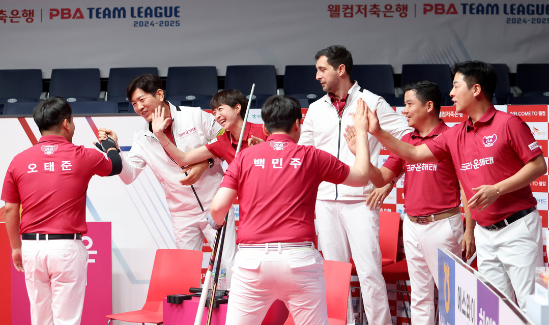 이날 열린 다른 경기서 ‘디펜딩 챔피언’ 하나카드는 응우옌꾸옥응우옌(베트남)과 김가영이 각각 2승씩 올려 2라운드 우승팀 웰컴저축은행을 4:0으로 꺾었다. 크라운해태는 풀세트 접전 끝에 휴온스를 제치고 3라운드 첫 경기를 승리로 장식했다. 크라운해태는 세트스코어 3:1로 앞서다가 5세트(남자단식)와 6세트(여자단식)를 연달아 내주며 7세트까지 경기가 이어졌지만, 리더 김재근이 이상대를 11:5(5이닝)로 물리치며 팀에 승리를 안겼다.