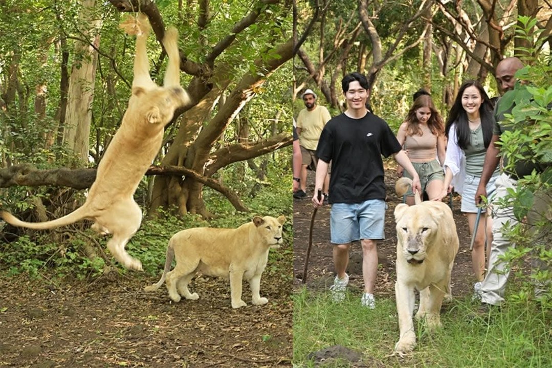 [Smart Senior News=김윤찬 기자] 아프리카의 동쪽, 인도양 남서부에 위치한 아름다운 섬나라 모리셔스. 이곳에는 '아프리카의 꽃 인도양의 보석'이라 불리는 모리셔스 최고의 인기 관광지, 카젤라 파크(Casella Park)가 있다. 카젤라 파크는 기린, 사자, 코뿔소, 얼룩말 등 다양한 아프리카 동물들을 만날 수 있는 사파리 테마파크로, 단순한 '보는 동물원'을 넘어 '체험하는 동물원'으로 유명하다. 이번에 카젤라 파크를 방문한 한국인 서재희 님과 김효은 님은 지난 5월 31일, 세계 각국의 방문객들과 함께 사자와 걷기, 만지기 등의 특별한 체험을 하며 동물들의 자연스러운 모습을 사진과 동영상으로 담아 소중한 추억을 만들었다.