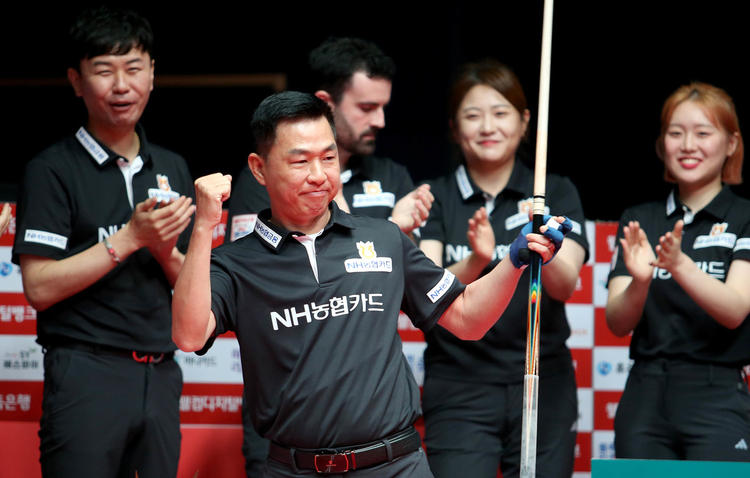 이날 NH농협카드는 하이원리조트를 상대로 초반 두 세트를 따냈으나 3,4세트를 헌납하면서 경기가 원점으로 돌아갔다. 5세트서 이충복을 맞은 마민껌은 4이닝째 결정적인 하이런 5점을 터트리며 11:6(7이닝) 승리했고, 2세트 여자복식서 김보미와 호흡을 맞춰 승리한 김민아가 6세트서 이미래를 9:4(11이닝)로 꺾어 팀 승리를 완성했다.