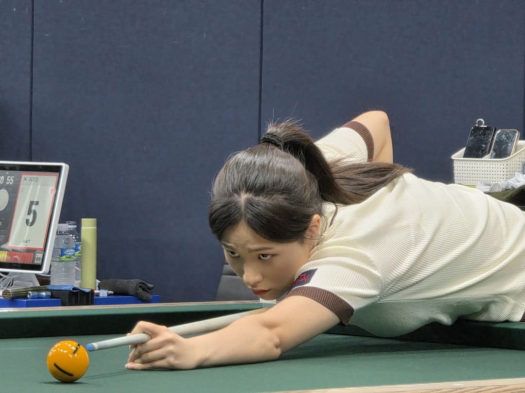 이화연은 장성아를 상대로 하이런 8점을 앞세워 25:3(13이닝)으로 승리했다. 이화연은 이날 애버리지 1.923을 기록, PPQ라운드 전체 1위에 올랐다.