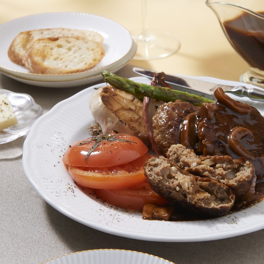 조선호텔 함박스테이크는 소고기와 돼지고기를 식감 있게 다진 뒤 도톰하게 빚어내어 스테이크를 먹는 듯한 식감을 자랑한다. 특히, 고기 함량이 67% 정도로 높아 풍부한 육향과 입안에서 팡팡 터지는 육즙이 특징이다. 호텔 셰프의 특별한 배합 비율로 들어간 다진 양파는 부드러우면서도 담백한 맛으로 특별함을 더했다. 고기와 채소가 조화롭게 어우러져 맛뿐만 아니라, 영양도 가득해 밥과 함께 곁들여 먹는 반찬이나 든든한 한 끼 식사로도 안성맞춤이다.