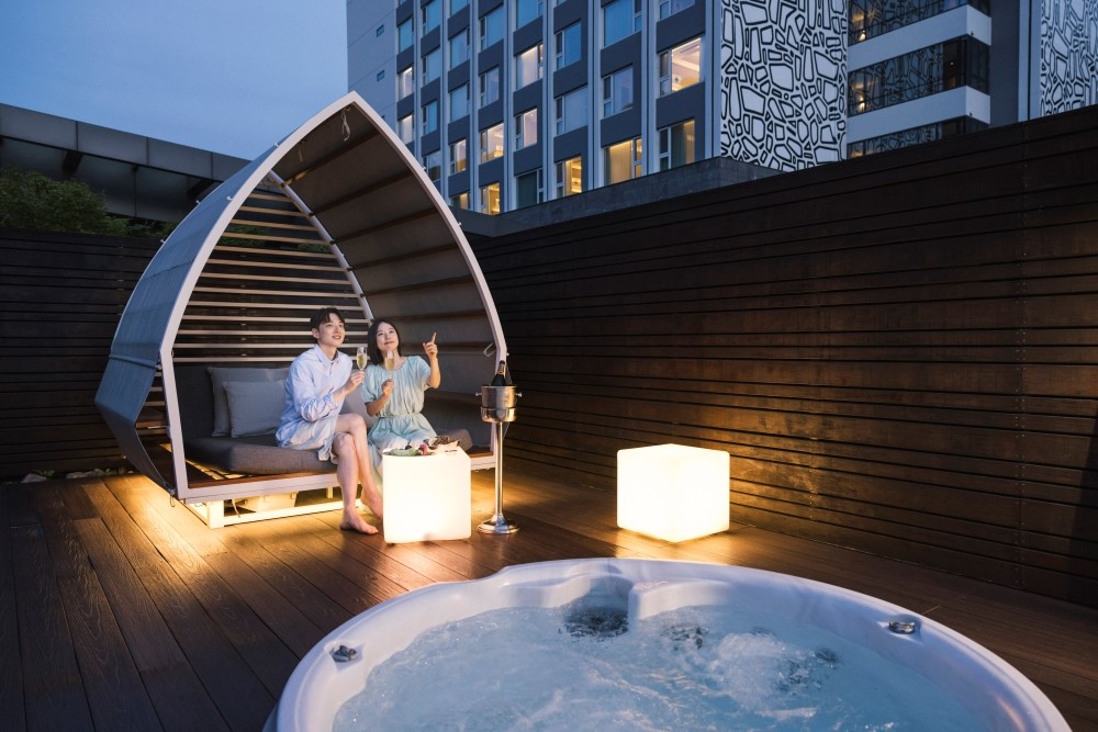 청명한 자연 풍광을 만끽할 수 있는 야외 수영장과 자쿠지, 실내 수영장, 노천탕, 습/건식 사우나 등이 마련된 아쿠아 클럽에서는 신나는 물놀이와 더불어 세계적인 아티스트 리차드 우즈가 감각적인 색채와 패턴으로 완성한 블루 스톤 아트워크를 배경으로 이국적인 분위기의 커플 사진을 남기기에도 더없이 좋다. 특히 탁 트인 가리왕산의 절경과 맑은 공기, 찰랑이는 물소리에 오감으로 몰입하며 독립된 공간에서 둘만의 힐링 입욕을 누릴 수 있도록 프라이빗 자쿠지 50% 할인 혜택도 추가로 제공된다.