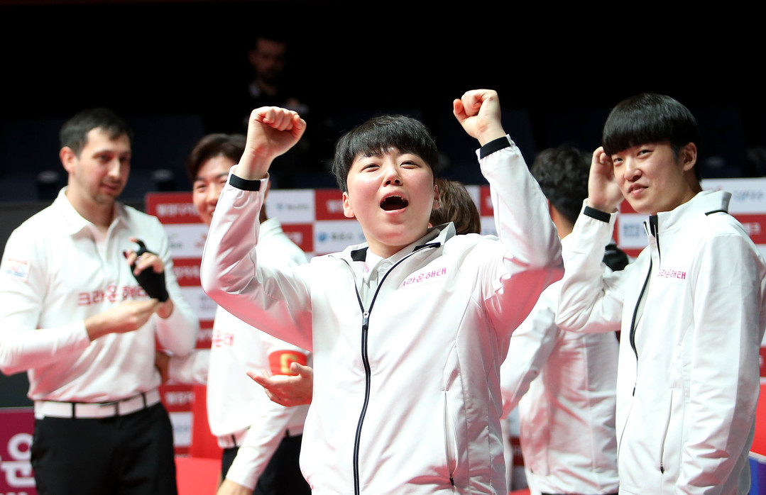 이날 크라운해태는 복식조의 활약이 빛났다. 선봉으로 나선 김재근-김태관이 조건휘-응오딘나이(베트남)를 3이닝만에 11:10으로 돌려세우고 기선을 잡은 크라운해태는 2세트에 나선 백민주-임정숙이 강지은-히다 오리에(일본)를 9:6(8이닝)으로 물리치고 2:0으로 앞서갔다.