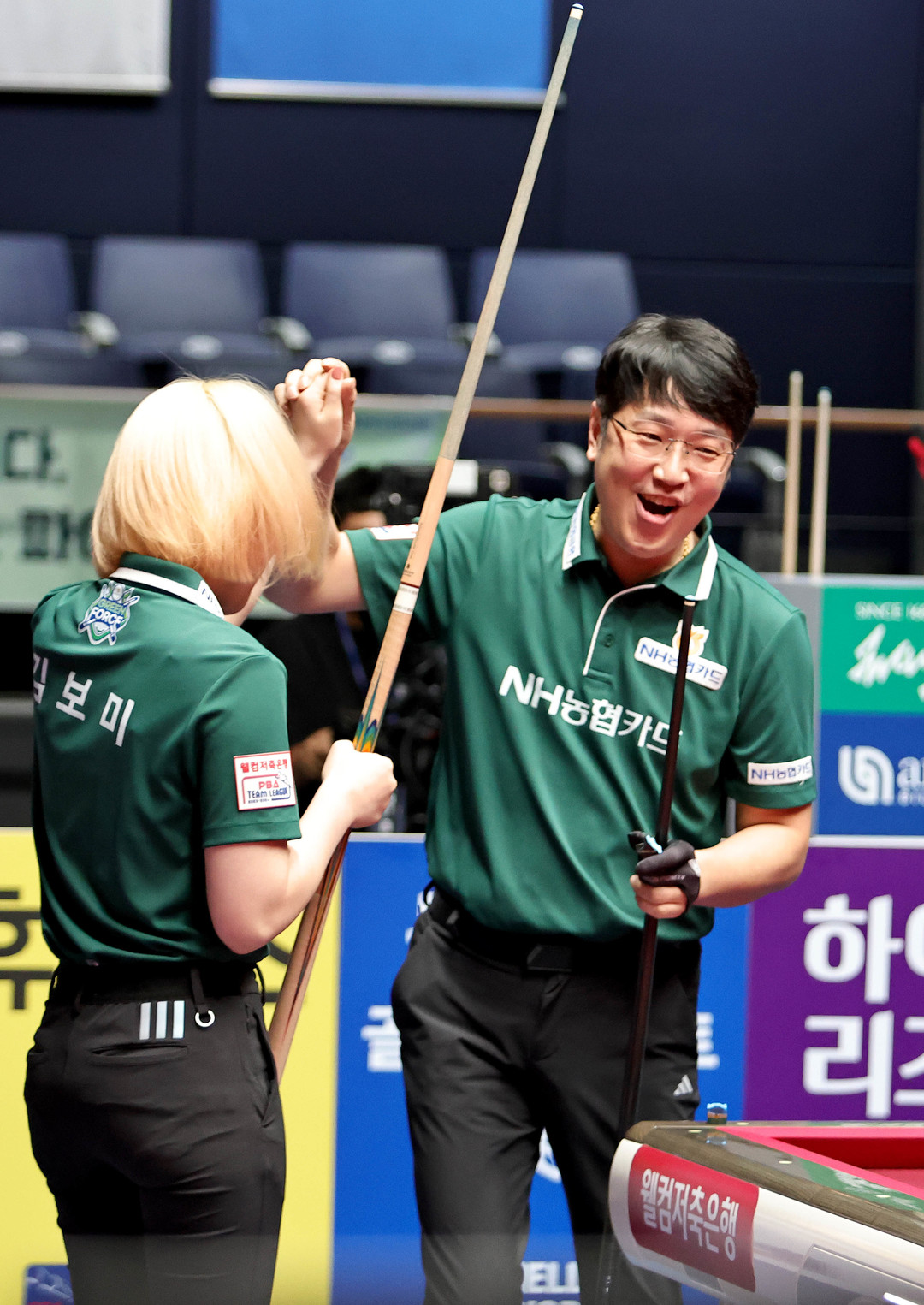 한편, NH농협카드는 이날 에스와이를 상대로 조재호, 김보미가 2승을 거두는 활약에 힘입어 4:0 완승, 11연승을 기록하며 PBA 팀리그 최다연승 기록에 1승을 더했다. 하이원리조트도 하나카드에 세트스코어 4:2로 승리했다.