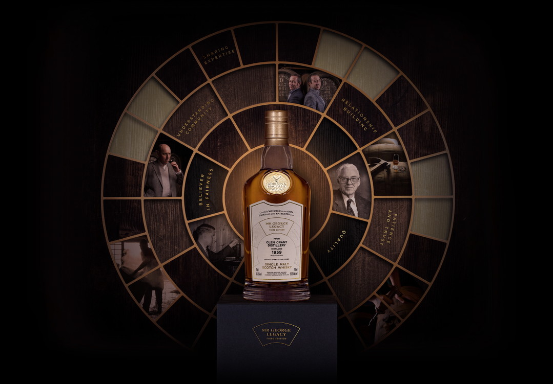 ‘조지 레거시 1959’는 63년 숙성 위스키로 싱글몰트 위스키를 최초로 선보이며 산업화로 발전시킨 선구자 ‘조지 어쿼트 (George Urquhart)’의 업적을 기리기 위한 헌정 위스키이다. 최고의 캐스크(위스키를 담는통)과 원액으로 싱글몰트 위스키를 만들기 위해 스코틀랜드 전 지역의 증류소를 수소문한 끝에 1959년 10월 스코틀랜드 북부 외곽의 글렌 그랜트 증류소 (Glen Grant Distillery)에서 증류하여 지난 2022년 11월 단 368병에 담아 출시하였다.
