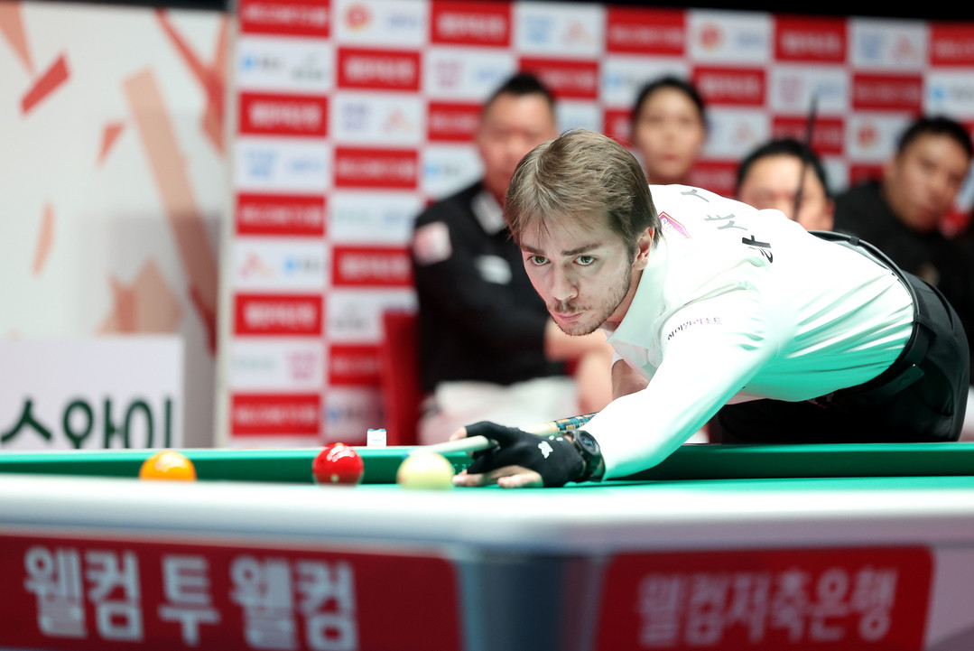 하이원리조트의 초반 분위기는 상당했다. 1세트 체네트-이충복이 서현민-최원준을 11:1(5이닝)로 이기며 앞서나갔고, 2세트엔 이미래-김다희가 이우경-한지은을 9:6(8이닝)으로 돌려세웠다. 3세트에 다시 출격한 체네트가 서현민을 15:12(9이닝)로 잡아내 순식간에 세트스코어 3:0으로 앞서나갔다. 승리까지 한 세트만 남겨놓은 하이원리조트는 갑자기 흔들리기 시작했다. 4세트에 임성균-이미래가 최원준-한지은에 7:9(8이닝)로 덜미를 잡혔고, 5세트와 6세트마저 내리 패배하며 승부는 7세트로 향했다. 7세트에 나선 ‘튀르키예 신성’ 부라크 하샤시가 에스와이 주장 황득희를 상대로 1:1로 맞선 5이닝째 끝내기 하이런 10점으로 11:1로 승리, 팀에 귀중한 승점 2를 안겼다.