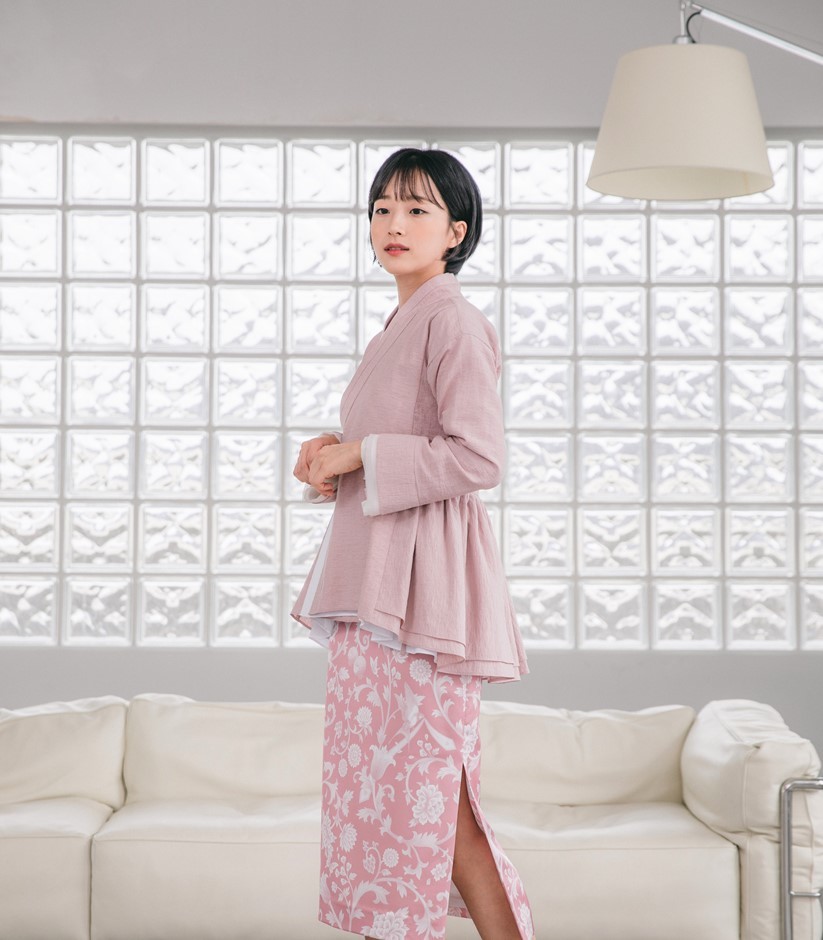 '액주름저고리'는 인체 실루엣을 따라 퍼질 수 있게 양쪽 사이드에 주름을 넣어(전통 액주름) 활동성을 높인 것이 특징이다. 세탁기 울세탁이 가능한 혼용률의 레이온 82%, 나일론 18% 혼방을 사용하여 유지 관리의 편리함도 도모했다.