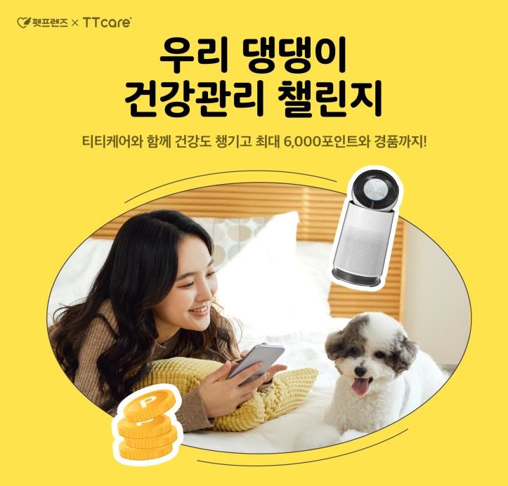 [스마트시니어뉴스=임요희 기자] 반려동물 1등 쇼핑몰 펫프렌즈가 AI를 활용한 반려동물 헬스케어 앱 '티티케어(TTcare)'와 함께 '우리 댕댕이 건강관리 챌린지' 이벤트를 진행한다고 10일 밝혔다.