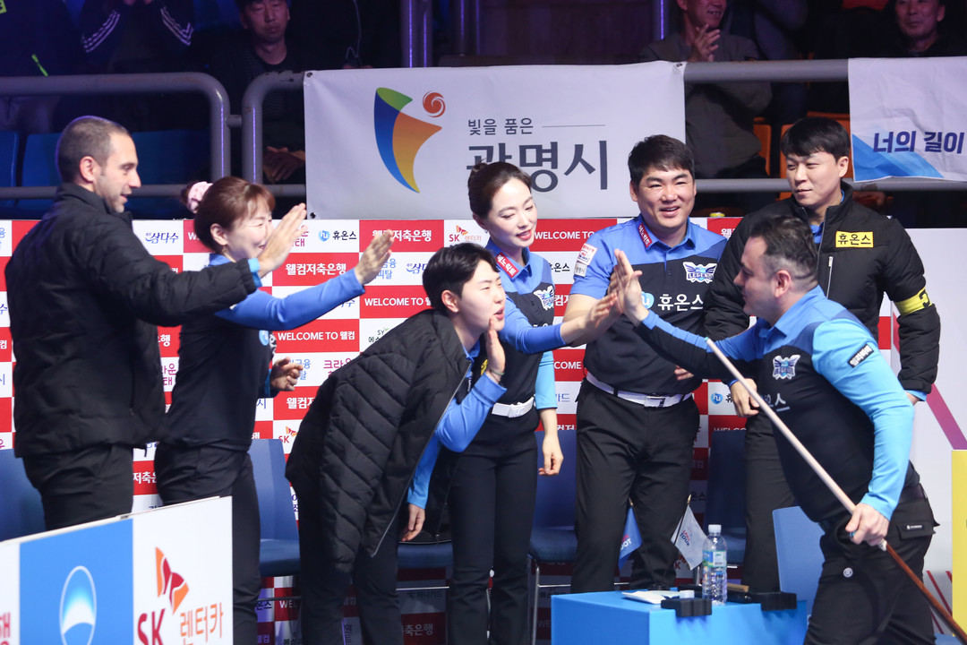휴온스는 1세트(남자복식)서 최성원-이상대가 1점도 올리지 못한 채 응우옌꾸옥응우옌(베트남)-무라트 나지 초클루(튀르키예)에 0:11(3이닝)로 완패했지만, 2세트 이신영-김세연이 김가영-김진아에 9:4(4이닝)로 승리해 세트스코어 동률을 만들었다. 이어진 3세트(남자단식)서 로빈슨 모랄레스(스페인)가 신정주를 상대로 0:11로 뒤지고 있던 2이닝째 2점에 이어 3이닝째 9점 장타로 동점을 만들었고, 5이닝째 남은 4점을 채우며 15:11(5이닝)로 대역전승을 만들어냈다.